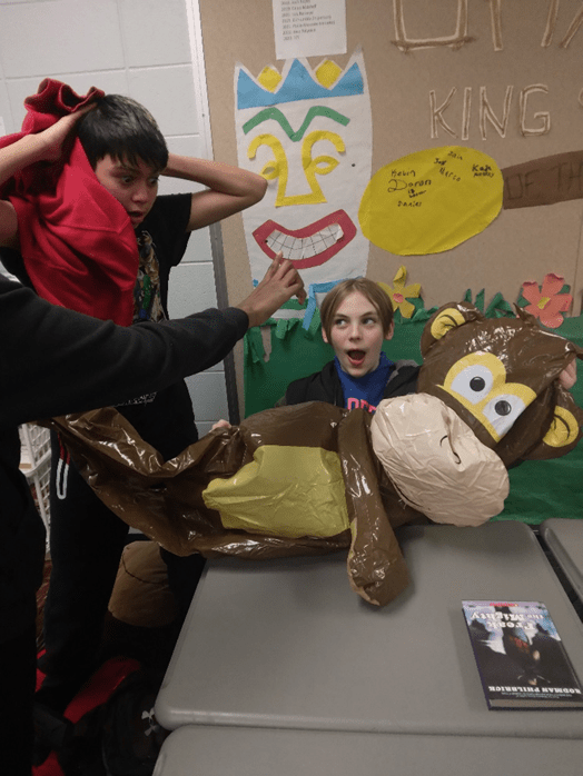 Just for fun: So, last Wednesday I was camped out behind my desk, grading journals while my students were reading Freak the Mighty quietly to themselves—or so I thought. With three minutes until the bell, I looked to the corner of my room and saw a young man blowing up an inflatable monkey. Our eyes met. His eyes widened a bit as I gave him a disapproving glance. I had two choices at that moment: get angry or simply laugh at his shenanigans. I chose the latter and captured the moment with a picture. Enjoy the picture below. And yes, this is the same gentleman who wrote about the three monkeys dancing on the bed in my “Goodbye, Sayri!” blog post. Every day something new!