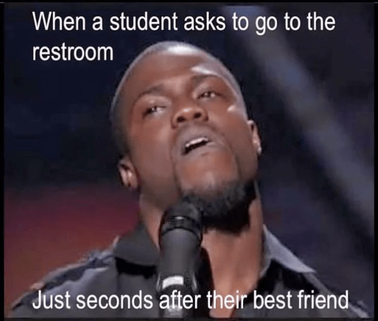 - Encourage students to be proactive, using the bathroom on their breaks. I always remind the kids that we have an extra minute passing period between 4th and 5th hour.
