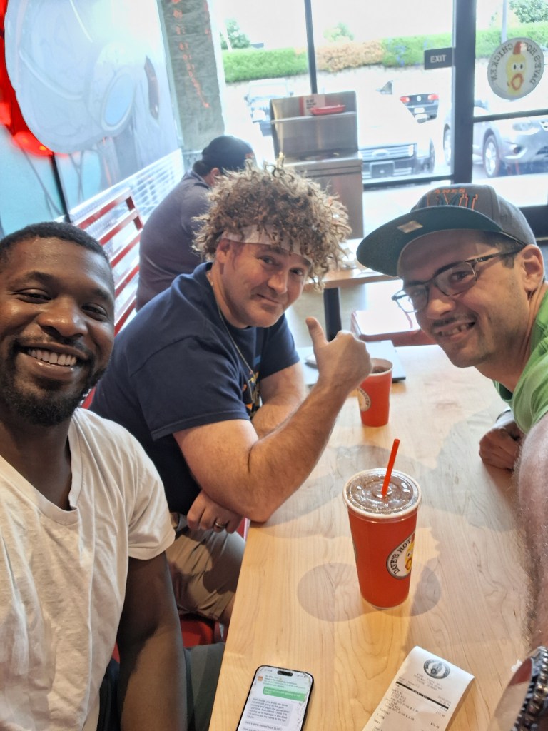 Just for fun: I feel obligated to share this tidbit of information with you. Do you know why the Chiefs have won their last two games? It is because I have worn my Patrick Mahomes wig at Amazon on my last shift before they play. No, I can’t wear it when I work on the dock in my hard hat, but I break out the Mahomes wig during picking stage once a week, and I have been known to wear it in public a time or two. Like the picture below when I went out to lunch with my old Amazon buddy, Downtown Warren Brown. The big question remains: will my wife and kids allow me to wear my Mahomes wig to the Chiefs tailgate at our church tomorrow night? Or will my wife roll her eyes at my shenanigans and my boys completely disown me in sheer embarrassment? Time will tell my friends. Oh yes, time will tell!